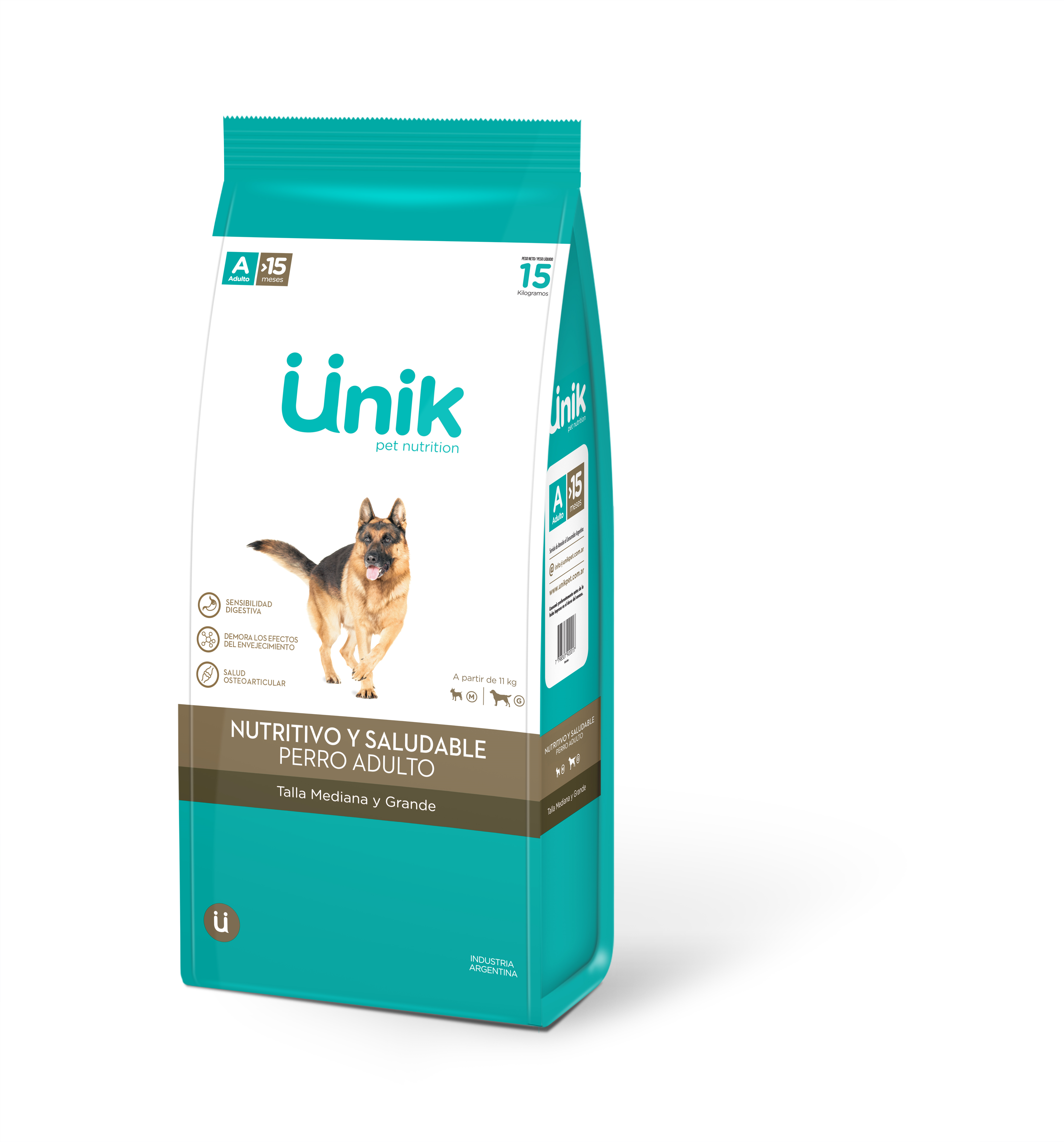Ünik Pet Adulto Talla Mediana y Grande diseñado para satisfacer las necesidades específicas del perro en su etapa de adultez.