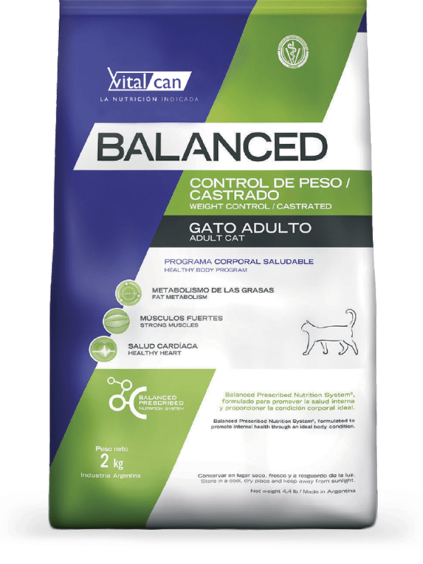 Programa Control de Peso. Indicado para gatos adultos castrados, con sobrepeso o tendencia a la obesidad.